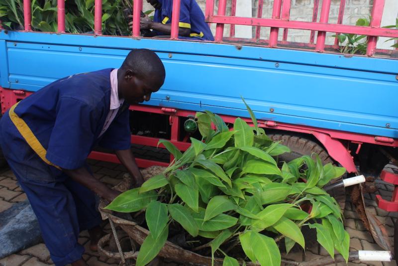 Photo: A worker at AGT Laboratories in Uganda tends to tissue-cultured plants.