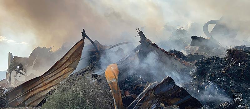 Picture of a fire that broke out in December 2021 inside a warehouse belonging to the receiving company in Tunisia. Image by Mabrouka Khedir