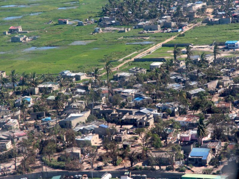 What was once a forest in Missica, Chimoio, now looks like an endless series of empty football fields. Cyclones are destroying hopes for harvests in Beira, Zalala and Lugela in Zambeze. In Marromeu National Reserve hungry and thirsty buffalos, hippo’s and monkeys roam over villages, eating meagre food supplies. Villagers in Massingir district in the south complain that in the past three years more than a thousand cows have died due to drought and extreme heat. Once-lush Manica, like Massaca, is now also barren, -in this case due to timber cutting and careless gold mining,- with the river red from the mining chemicals. The recent cyclone in Beira has destroyed what was left standing after earlier floods; malaria mosquitoes and cholera thrive in the puddles.